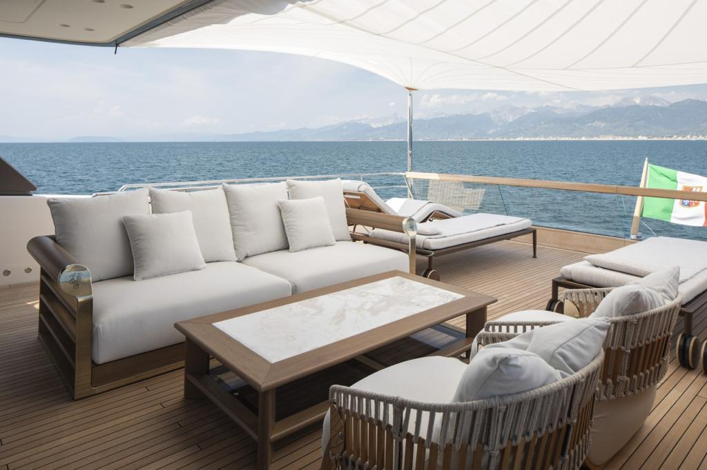 A 2022-built San Lorenzo SD96, Flori is the creation of designers Zuccon International Project & Studio Patricia Urquiola, completely balanced in every aspect, exhibiting breathtaking craftsmanship and a contemporary design. She provides 4 staterooms, with the Master suite located on the main deck, accommodating up to 9 guests with her extra pullman berth. The sky lounge is the ultimate place to unwind as the ceiling to floor glass balcony door on the portside of the yacht completely opens, sliding to the side revealing the scenic view. The balcony doors of the sky lounge aft also completely fold back, creating a vast area of the interior area connected to the exterior.